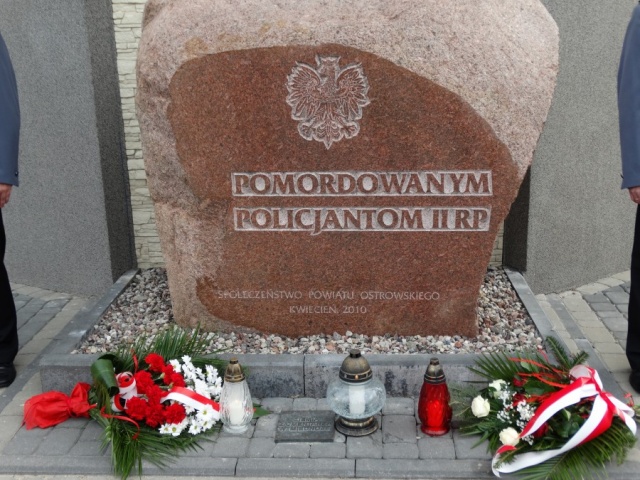 Policjanci i pracownicy KPP w Ostrowi Mazowieckiej oddali hołd pomordowanym przez NKWD policjantom, składając kwiaty i zapalając znicze pod pomnikiem Policjantów Zamordowanych w Katyniu.