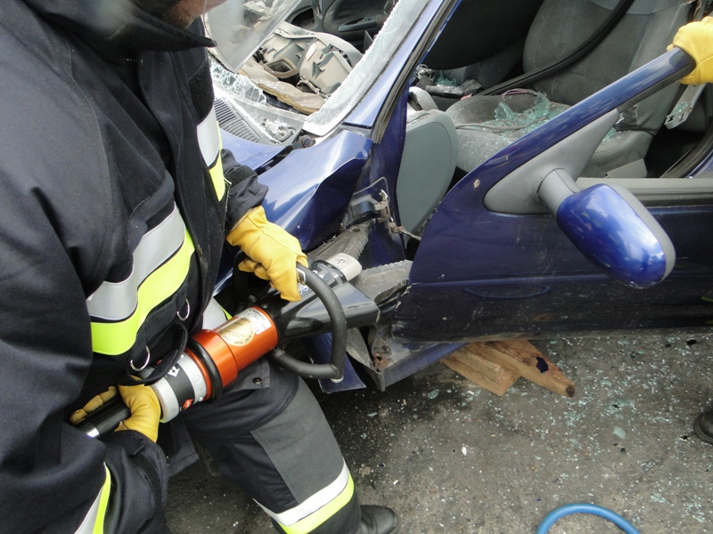 Kursanci mieli za zadanie zaprezentować techniki wykonywania dostępu do osób poszkodowanych, za pomocą narzędzi hydraulicznych.