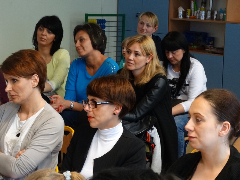 Mamy licznie przybyły na zaproszenie swoich pociech do klas, aby obejrzeć przygotowane przedstawienia.