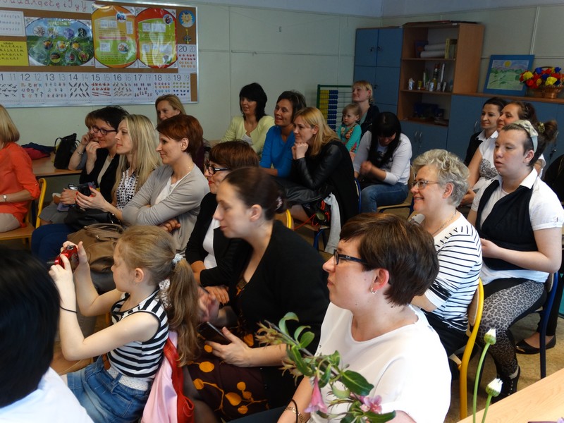 Mamy licznie przybyły na zaproszenie swoich pociech do klas, aby obejrzeć przygotowane przedstawienia.