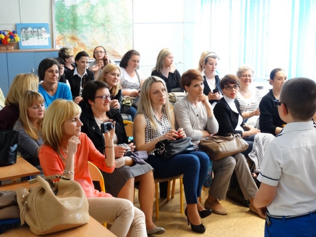 Mamy licznie przybyły na zaproszenie swoich pociech do klas, aby obejrzeć przygotowane przedstawienia.