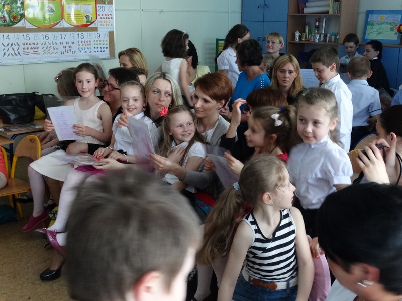 Mamy licznie przybyły na zaproszenie swoich pociech do klas, aby obejrzeć przygotowane przedstawienia.
