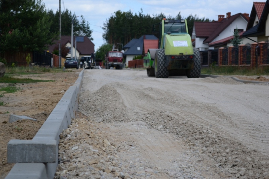 Aktualnie trwają prace związane z utwardzeniem nawierzchni ulicy kostką brukową.