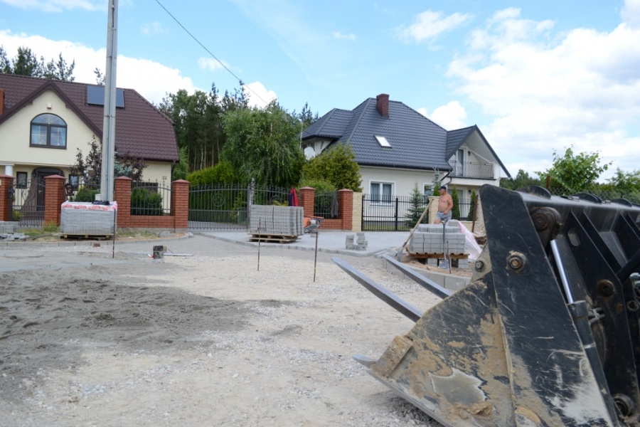 Aktualnie trwają prace związane z utwardzeniem nawierzchni ulicy kostką brukową.