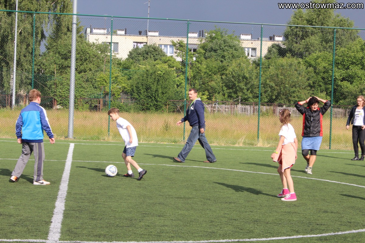 Mimo kapryśnej aury osiem trzyosobowych drużyn stawiło się na Orliku przy Trójce i wzięło udział w rodzinnej zabawie.