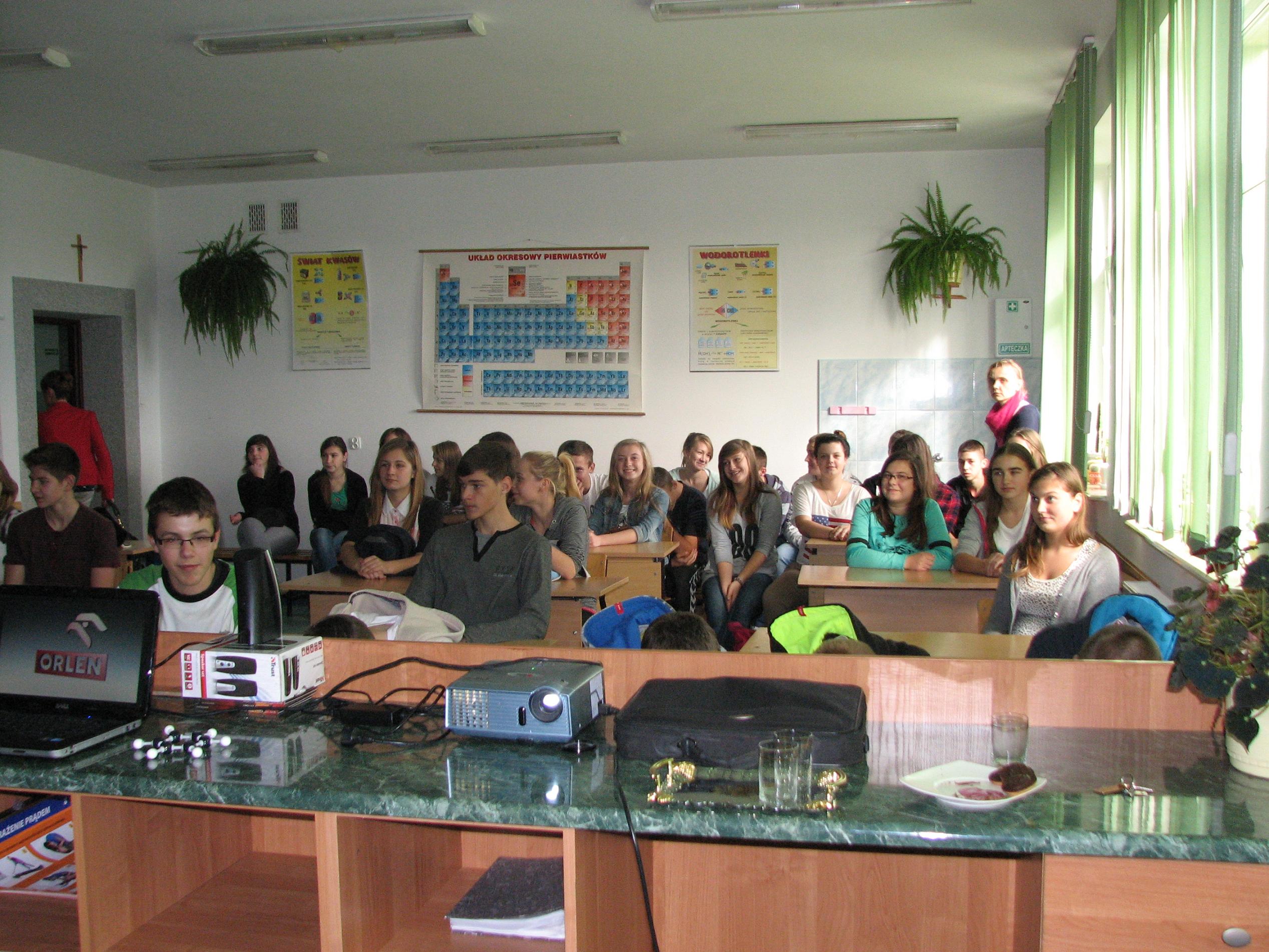W programie pokazów chemicznych, które odbyły się 28.10.2013 r w Publicznym Gimnazjum Nr 2 w Małkini, Publicznym Gimnazjum w Zarębach Kościelnych i Gminnym Gimnazjum w Andrzejewie nie przewidziano fajerwerków i eksplozji, ale nikt nie narzekał na nudę.