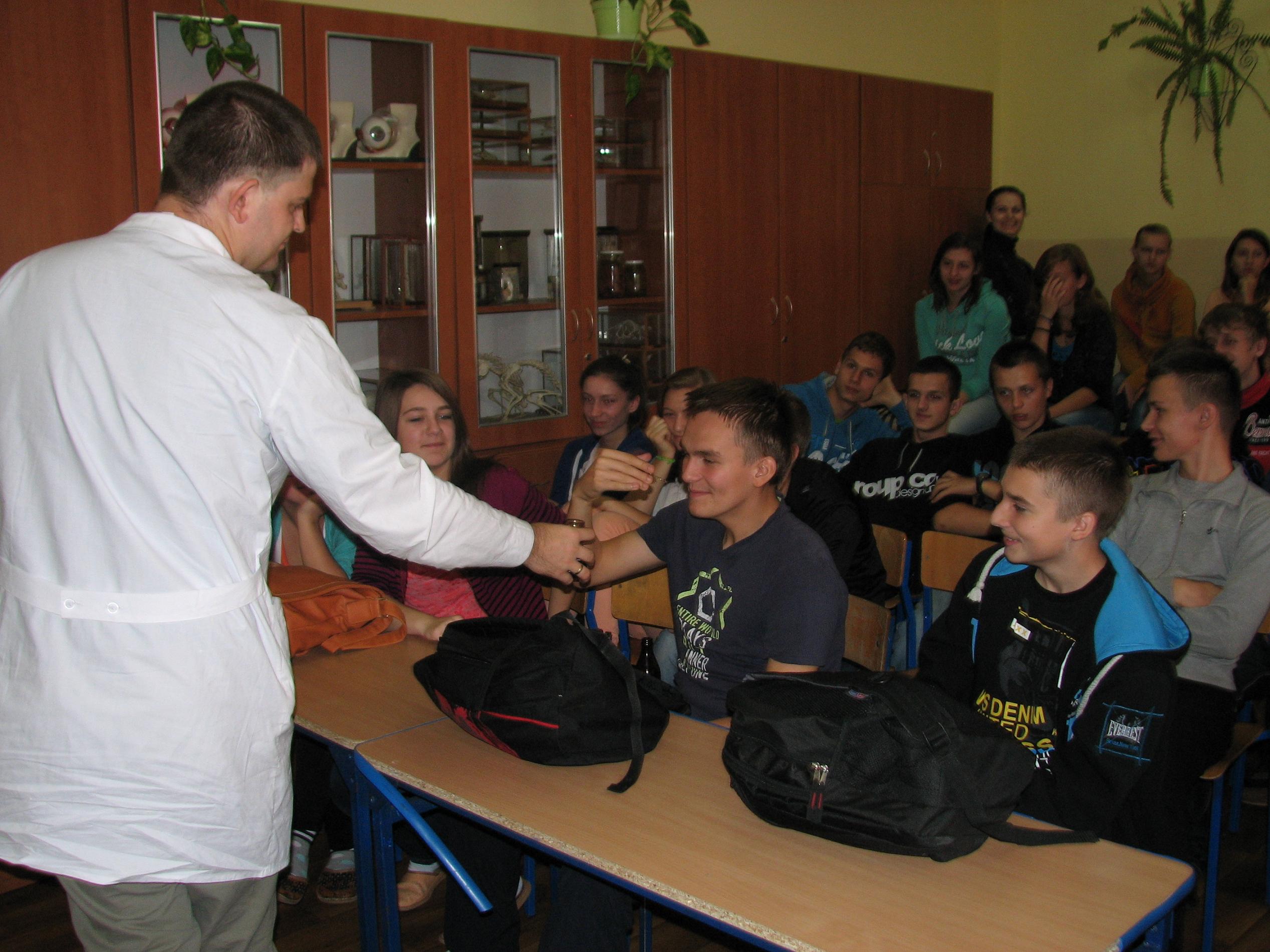 W programie pokazów chemicznych, które odbyły się 28.10.2013 r w Publicznym Gimnazjum Nr 2 w Małkini, Publicznym Gimnazjum w Zarębach Kościelnych i Gminnym Gimnazjum w Andrzejewie nie przewidziano fajerwerków i eksplozji, ale nikt nie narzekał na nudę.