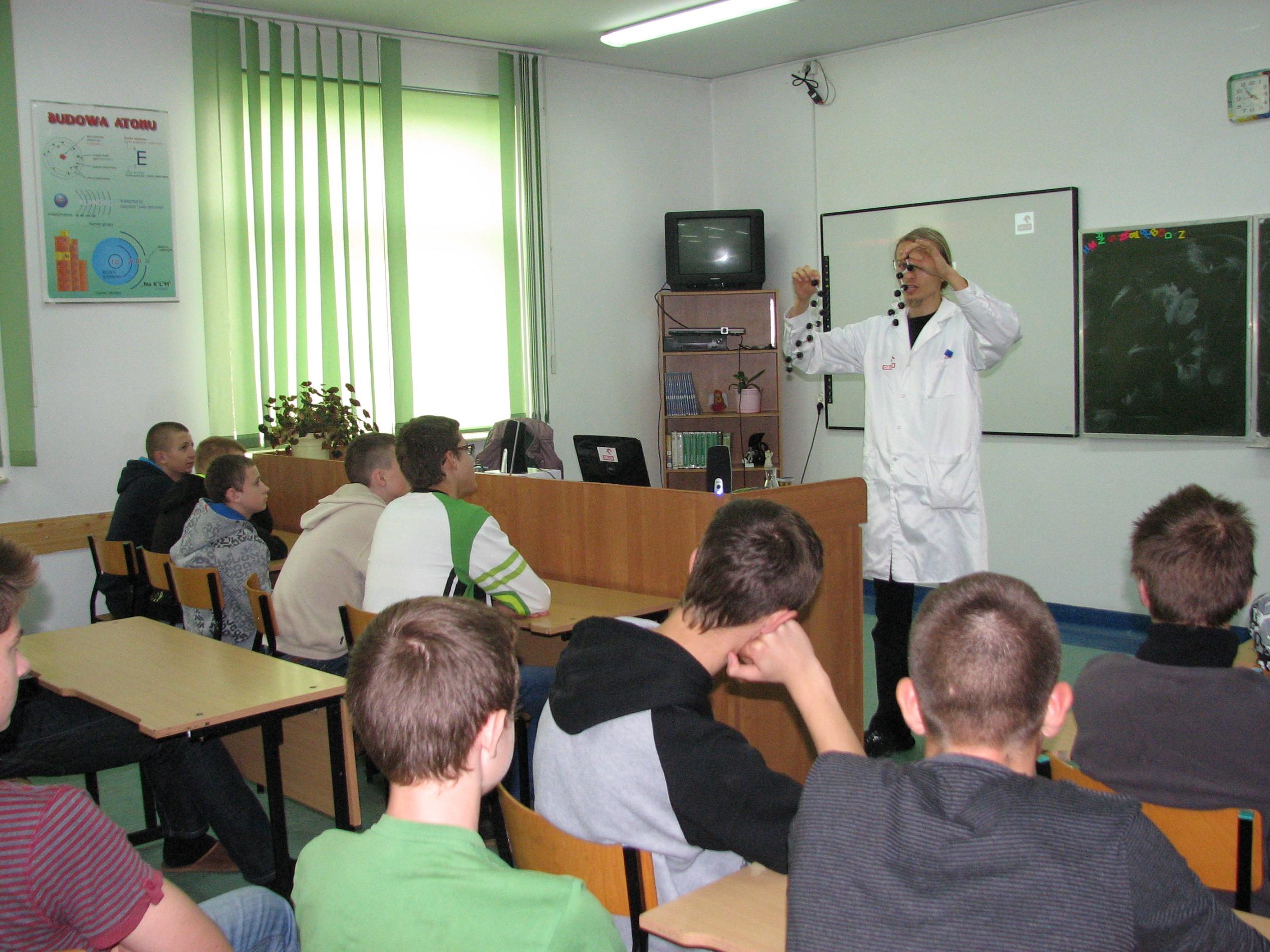 W programie pokazów chemicznych, które odbyły się 28.10.2013 r w Publicznym Gimnazjum Nr 2 w Małkini, Publicznym Gimnazjum w Zarębach Kościelnych i Gminnym Gimnazjum w Andrzejewie nie przewidziano fajerwerków i eksplozji, ale nikt nie narzekał na nudę.