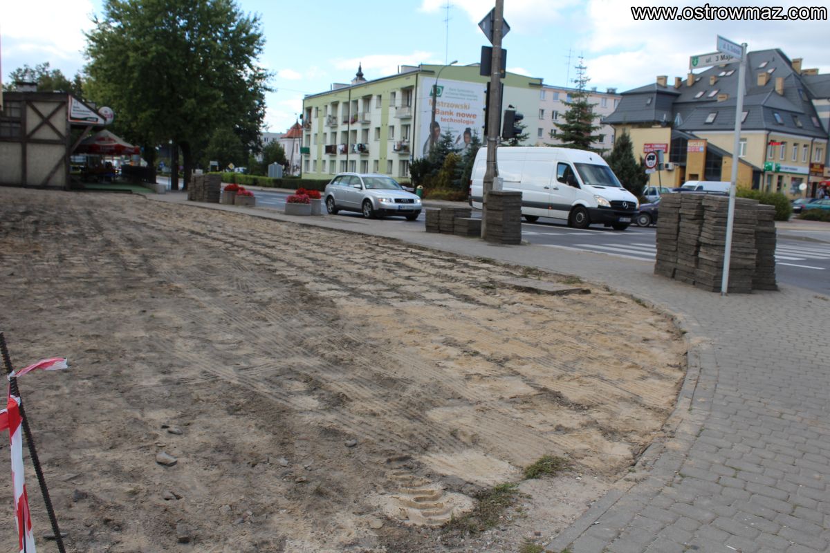 Remont chodnika przy głównym skrzyżowaniu Ostrowi (30.09.2015) - Zdjęcie 4/10