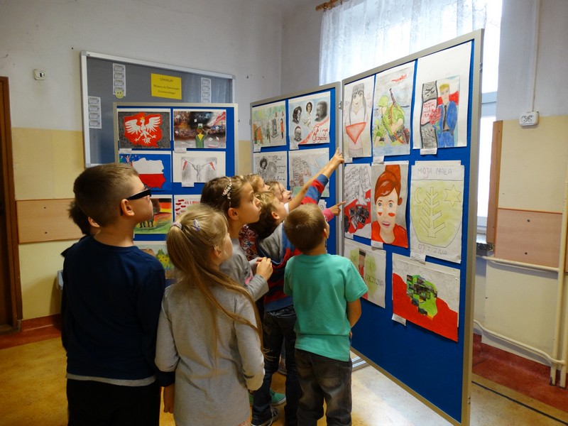 Szkoła Podstawowa nr 1 w Ostrowi Mazowieckiej zorganizowała wystawę prac konkursu plastycznego pt. "Ja i moja ojczyzna".