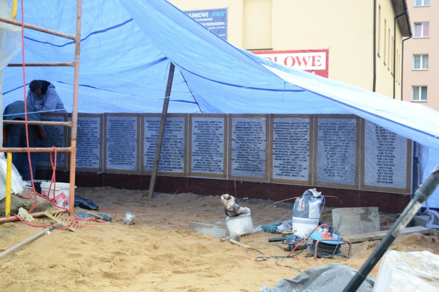 Trwają właśnie prace nad montażem płyt z nazwiskami i instalacją poszczególnych części pomnika.