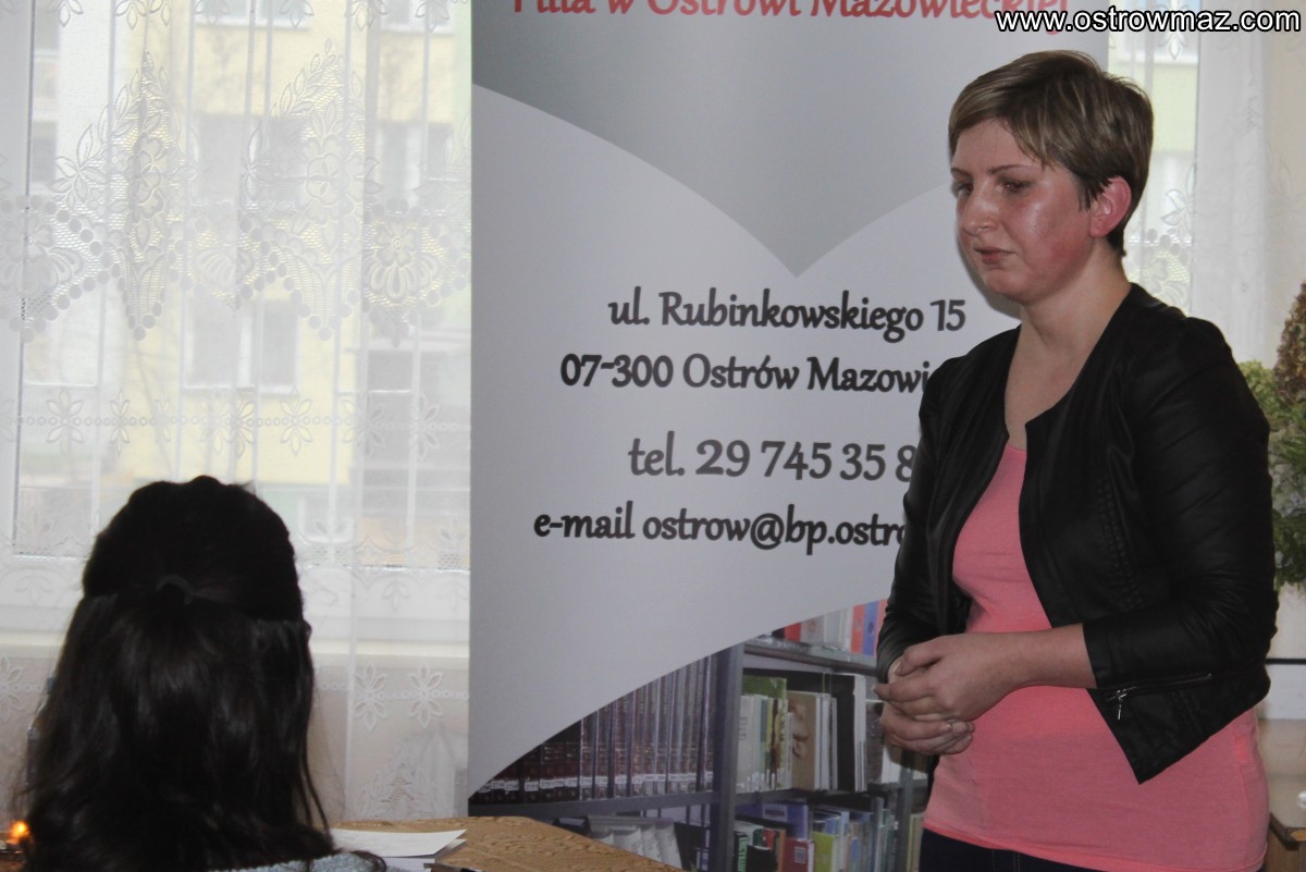 Podczas spotkania, na którym obecni byli uczniowie ostrowskich szkół oraz uczestnicy Środowiskowego Domu Samopomocy, poetka zaprezentowała wiersze ze swojego debiutanckiego tomiku pt. "Tęsknie".