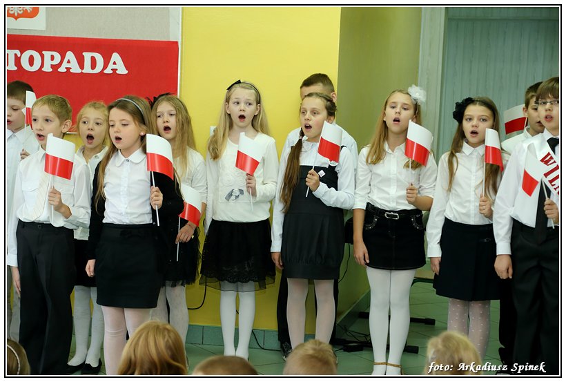 Z okazji Święto Niepodległości klasa IIIc pod kierunkiem pani Alicji Wajszczyk przygotowała montaż słowno-muzyczny. Dekoracje i wykorzystane rekwizyty były pomysłem pani Małgorzaty Sienickiej.