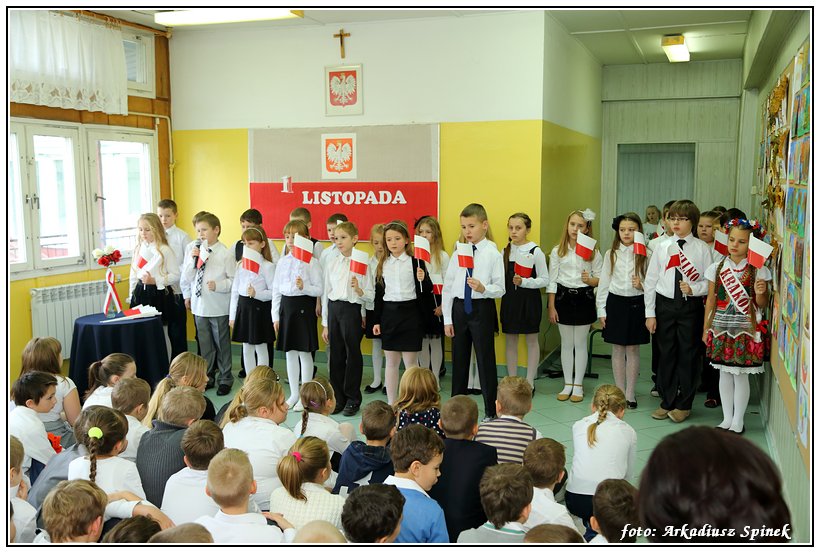 Z okazji Święto Niepodległości klasa IIIc pod kierunkiem pani Alicji Wajszczyk przygotowała montaż słowno-muzyczny. Dekoracje i wykorzystane rekwizyty były pomysłem pani Małgorzaty Sienickiej.