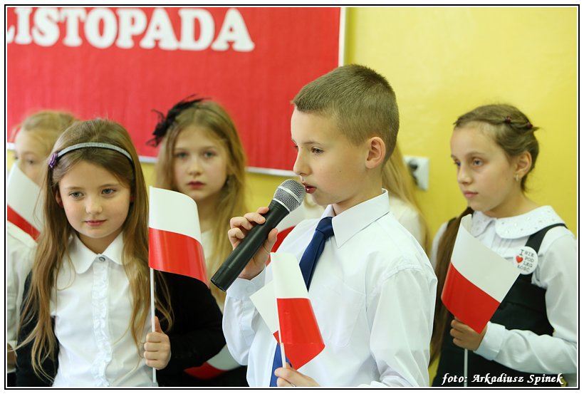 Z okazji Święto Niepodległości klasa IIIc pod kierunkiem pani Alicji Wajszczyk przygotowała montaż słowno-muzyczny. Dekoracje i wykorzystane rekwizyty były pomysłem pani Małgorzaty Sienickiej.