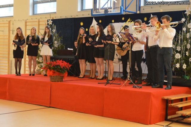 Tegoroczna wigilia szkolna w L.O. im Mikołaja Kopernika odbyła się na niedawno wybudowanej hali sportowej. Zgromadzili się tam nauczyciele, pracownicy szkoły, delegacje wszystkich klas oraz zaproszeni goście.