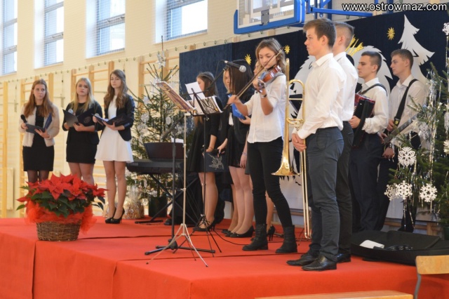Tegoroczna wigilia szkolna w L.O. im Mikołaja Kopernika odbyła się na niedawno wybudowanej hali sportowej. Zgromadzili się tam nauczyciele, pracownicy szkoły, delegacje wszystkich klas oraz zaproszeni goście.