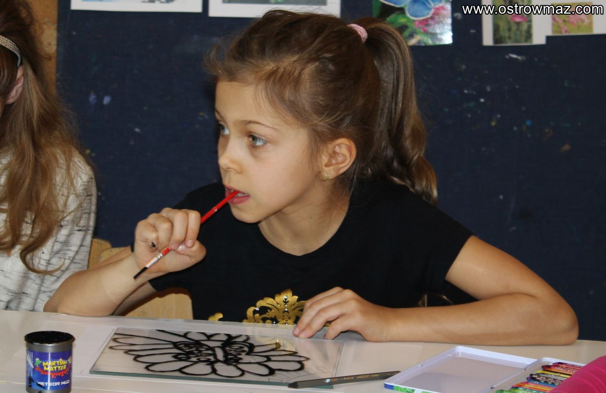 Podczas feryjnych warsztatów dzieci poznały tajniki malowania na szkle.