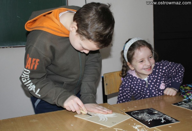 Na zakończenie zajęć każdy uczestnik mógł zabrać na pamiątkę wykonaną własnoręcznie grafikę.