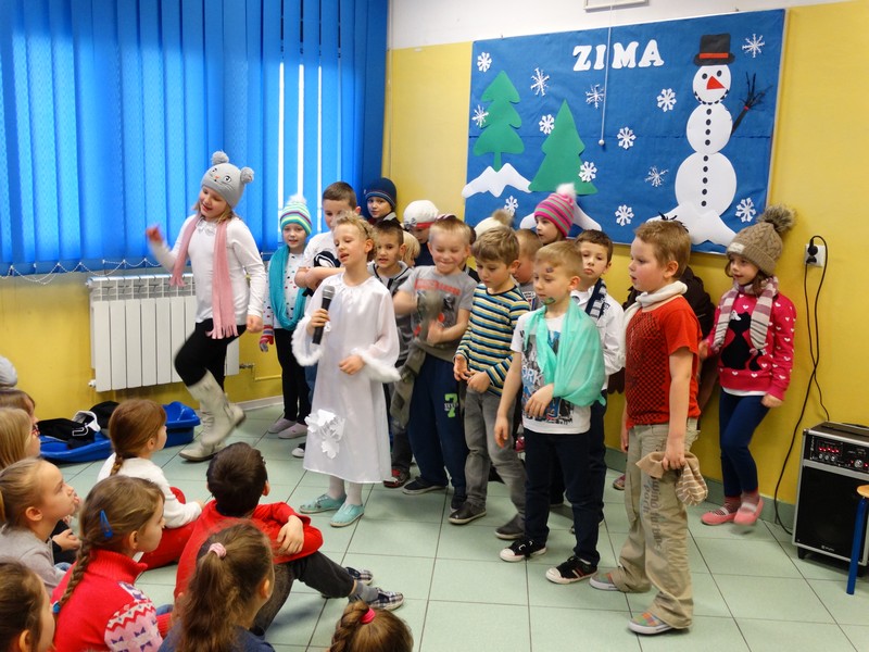 Bezpieczne zabawy zimowe- pod takim hasłem klasa I e z wychowawczynią Katarzyną Sitek przygotowała apel dla klas I-III w dniu 29.01.2016r.