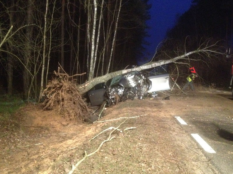 Kierowca VW Passata jadąc w kierunku Poręby z nieustalonych przyczyn zjechał do rowu uderzając w drzewo.