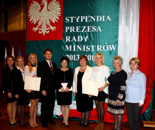 22 listopada 2013 r. Katarzyna Puścian z kl. III LO,,d?- służb mundurowych i Patrycja Suchcicka z kl. IV Technikum Usług Fryzjerskich wzięły udział w uroczystości wręczenia dyplomów potwierdzających uzyskanie Stypendium Prezesa Rady Ministrów.