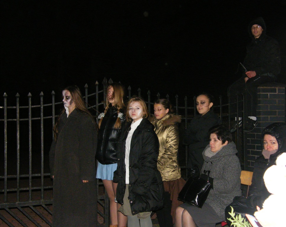 27 listopada przed budynkiem PG3 dwudziestu uczniów przedstawiło inscenizację "Dziady - cz. II" w ramach projektu edukacyjnego.