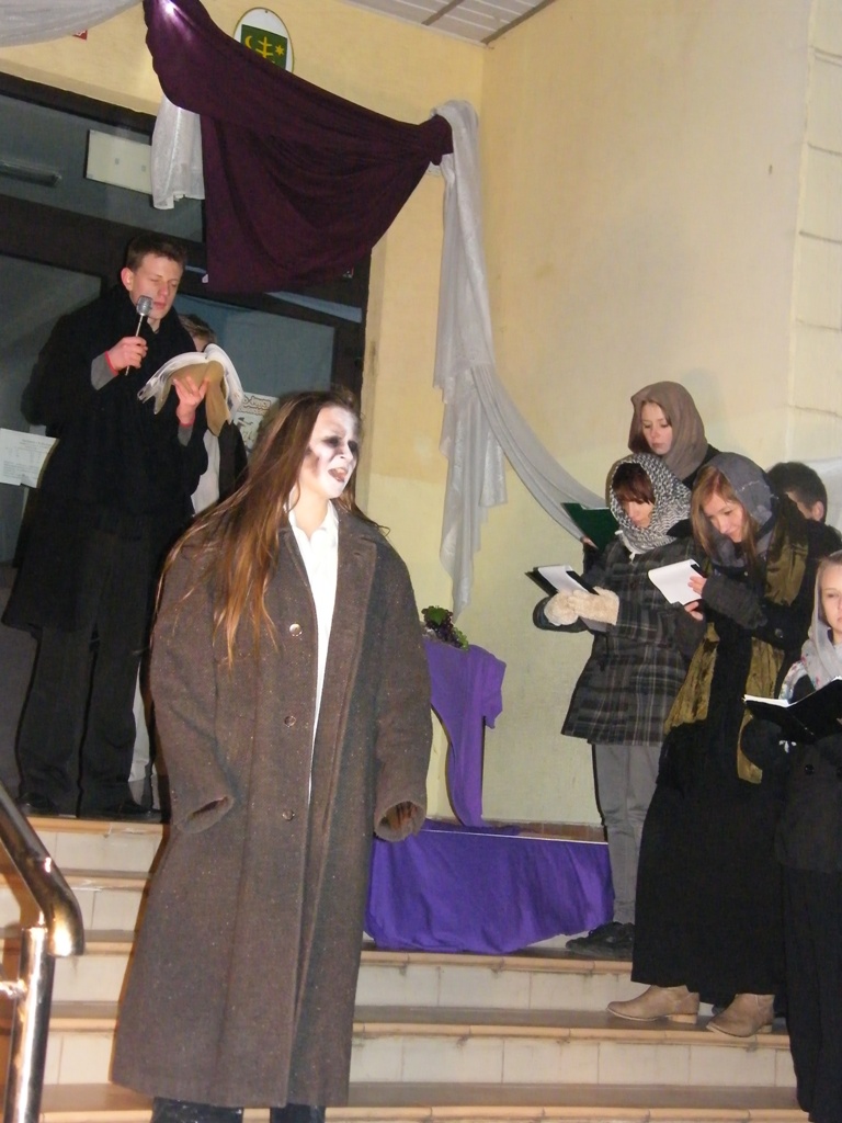 27 listopada przed budynkiem PG3 dwudziestu uczniów przedstawiło inscenizację "Dziady - cz. II" w ramach projektu edukacyjnego.