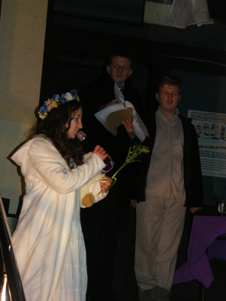 27 listopada przed budynkiem PG3 dwudziestu uczniów przedstawiło inscenizację "Dziady - cz. II" w ramach projektu edukacyjnego.