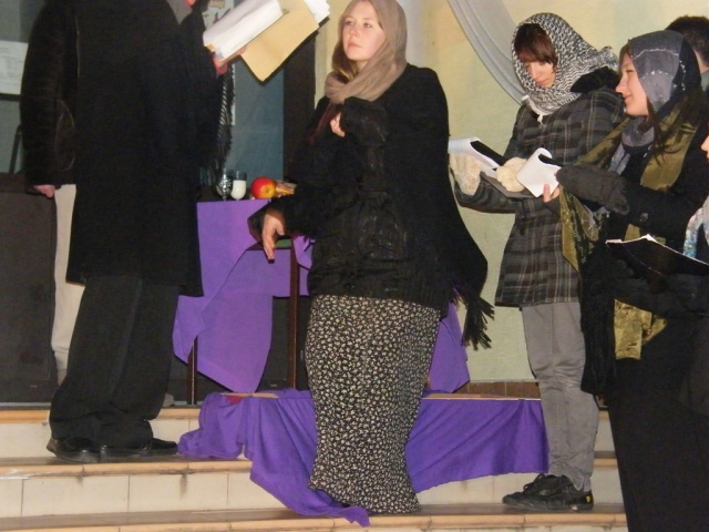 27 listopada przed budynkiem PG3 dwudziestu uczniów przedstawiło inscenizację "Dziady - cz. II" w ramach projektu edukacyjnego.