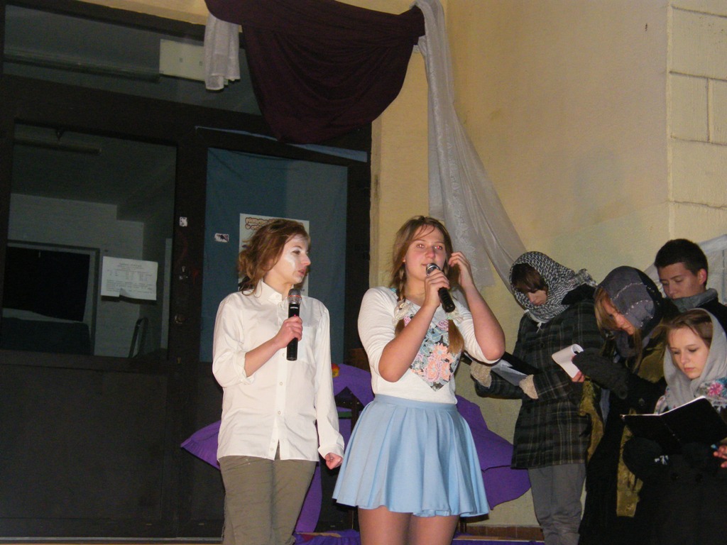 27 listopada przed budynkiem PG3 dwudziestu uczniów przedstawiło inscenizację "Dziady - cz. II" w ramach projektu edukacyjnego.