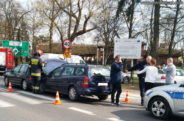 Około godz. 15:00 na ul. Różańskiej kierujący VW golf 40-letni mieszkaniec gminy Wąsewo zatrzymał się przed przejściem dla pieszych, aby ustąpić pierwszeństwa pieszej. W tym momencie kierująca Oplem z Gminy Zareby Kościelne najechała na tył VW golf.