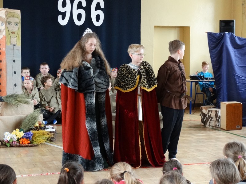 W 1050 rocznicę Chrztu Mieszka I w murach Szkoły Podstawowej nr 1 w Ostrowi Mazowieckiej wiele się działo. Pojawiła się bowiem duża grupa Polan wraz ze swoim władcą.