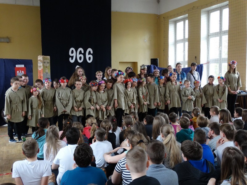 W 1050 rocznicę Chrztu Mieszka I w murach Szkoły Podstawowej nr 1 w Ostrowi Mazowieckiej wiele się działo. Pojawiła się bowiem duża grupa Polan wraz ze swoim władcą.