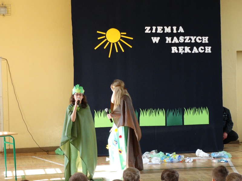 22 kwietnia 2016r.obchodziliśmy w naszej szkole Dzień Ziemi. Z tej okazji uczniowie klasy IVb wraz z nauczycielką przyrody i zarazem wychowawczynią, Agnieszką Tułowiecką, przygotowali apel dla uczniów klas IV - VI.