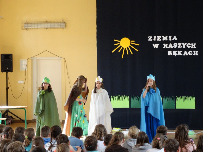 22 kwietnia 2016r.obchodziliśmy w naszej szkole Dzień Ziemi. Z tej okazji uczniowie klasy IVb wraz z nauczycielką przyrody i zarazem wychowawczynią, Agnieszką Tułowiecką, przygotowali apel dla uczniów klas IV - VI.