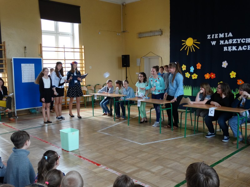 22 kwietnia 2016r.obchodziliśmy w naszej szkole Dzień Ziemi. Z tej okazji uczniowie klasy IVb wraz z nauczycielką przyrody i zarazem wychowawczynią, Agnieszką Tułowiecką, przygotowali apel dla uczniów klas IV - VI.