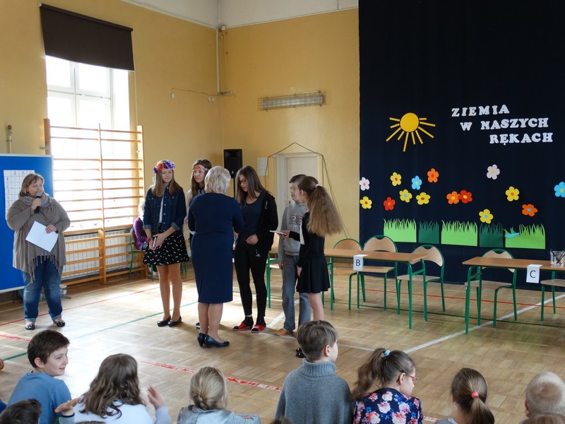 22 kwietnia 2016r.obchodziliśmy w naszej szkole Dzień Ziemi. Z tej okazji uczniowie klasy IVb wraz z nauczycielką przyrody i zarazem wychowawczynią, Agnieszką Tułowiecką, przygotowali apel dla uczniów klas IV - VI.