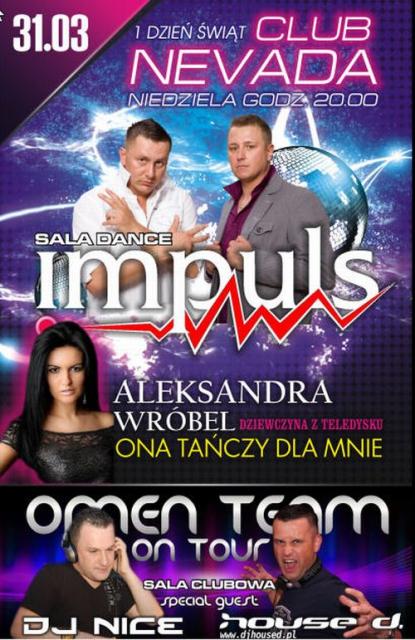 W I dzień świąt wielkanocnych na sali dance wystąpi dla Was zespół IMPULS, wraz z którym pojawi się dziewczyna z teledysku zespołu Weekend - Ona Tańczy Dla Mnie czyli ALEKSANDRA WRÓBEL.