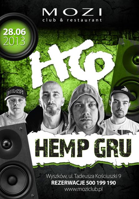 HEMP GRU to zespół z warszawskiego Mokotowa stworzony przez Bilona i Wilka, z którymi w stałym składzie koncertowym występują również Żary oraz DJ Steez. Zadebiutowali w 1998 roku na składance "Hip-Hop-owy Raport Z Osiedla" utworem "Na krawędzi". Raperów ze stolicy charakteryzuje bezkompromisowy styl, podany bez dwuznaczności i owijania w bawełnę. Po prawie ośmiu latach od pierwszej nagrywki, w listopadzie 2004 roku na półki sklepowe trafił debiutancki album HG zatytułowany "Klucz". Jedna z najbardziej wyczekiwanych produkcji tamtego okresu do dziś pozostaje klasyczną pozycją polskiego rapu.