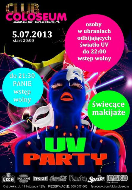 Tego wieczoru w klubie górę wezmą farby fluorescencyjne oraz dodatkowe lampy UV! W stworzeniu klimatu pomogą klubowe hostessy, które będą malować ciała zainteresowanych gości.